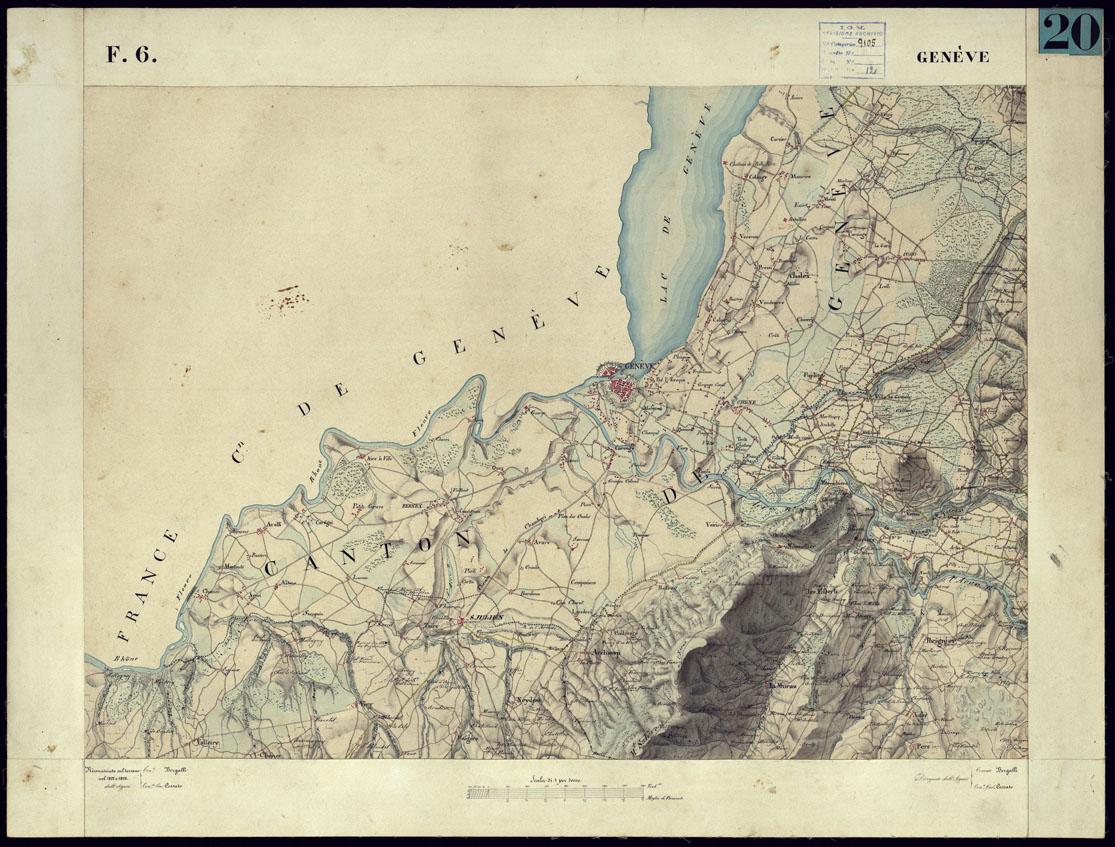 CARTA TOPOGRAFICA DEGLI STATI DI TERRA FERMA DI S.S.R.M. CARLO ALBERTO RE DI SARDEGNA FATTA DAL CORPO DELLO STATO MAGGIORE COMANDATO DAL TEN.TE GEN.LE B.NE DI MONTHOUX ALLA SCALA DI 1 50.000 1831 - FOGLIO F.6 GENEVE.