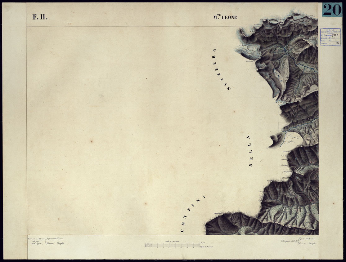 CARTA TOPOGRAFICA DEGLI STATI DI TERRA FERMA DI S.S.R.M. CARLO ALBERTO RE DI SARDEGNA FATTA DAL CORPO DELLO STATO MAGGIORE COMANDATO DAL TEN.TE GEN.LE B.NE DI MONTHOUX ALLA SCALA DI 1 50.000 1831 - FOGLIO F.11 M. LEONE.