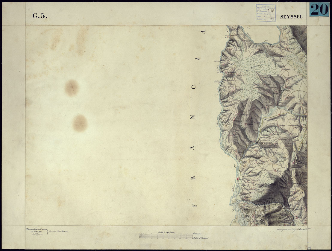 CARTA TOPOGRAFICA DEGLI STATI DI TERRA FERMA DI S.S.R.M. CARLO ALBERTO RE DI SARDEGNA FATTA DAL CORPO DELLO STATO MAGGIORE COMANDATO DAL TEN.TE GEN.LE B.NE DI MONTHOUX ALLA SCALA DI 1 50.000 1831 - FOGLIO G.5 SEYSSEL.