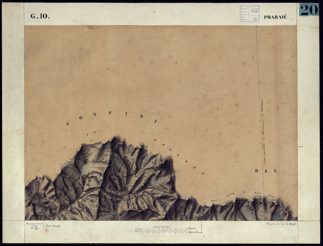 CARTA TOPOGRAFICA DEGLI STATI DI TERRA FERMA DI S.S.R.M. CARLO ALBERTO RE DI SARDEGNA FATTA DAL CORPO DELLO STATO MAGGIORE COMANDATO DAL TEN.TE GEN.LE B.NE DI MONTHOUX ALLA SCALA DI 1 50.000 1831 - FOGLIO G.10 PRARAJE'.