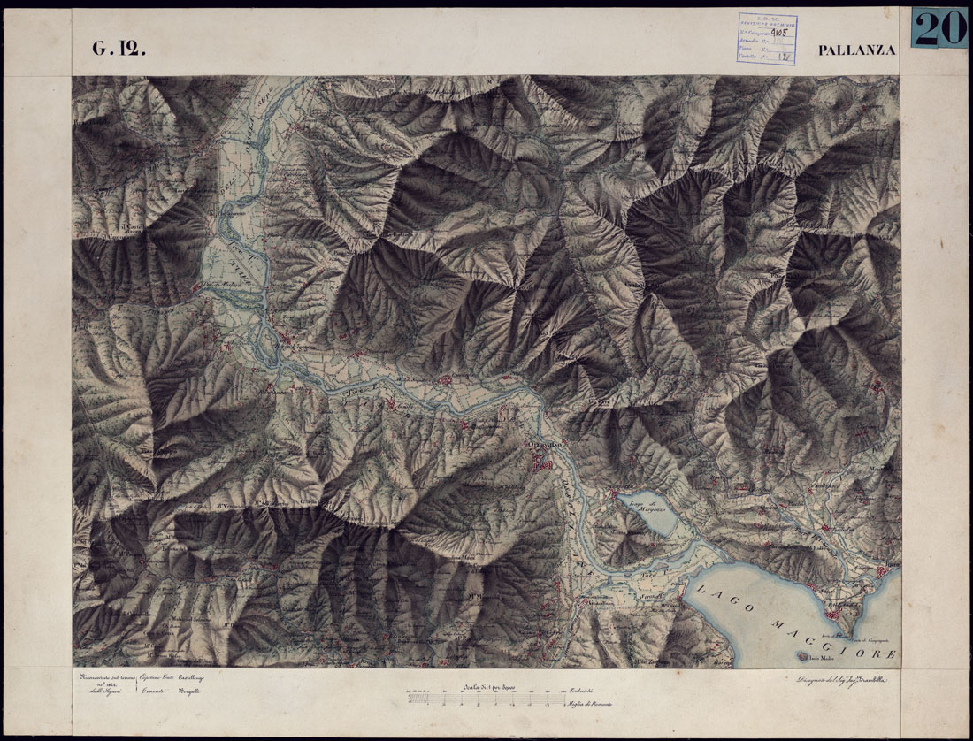 CARTA TOPOGRAFICA DEGLI STATI DI TERRA FERMA DI S.S.R.M. CARLO ALBERTO RE DI SARDEGNA FATTA DAL CORPO DELLO STATO MAGGIORE COMANDATO DAL TEN.TE GEN.LE B.NE DI MONTHOUX ALLA SCALA DI 1 50.000 1831 - FOGLIO G.12 PALLANZA.