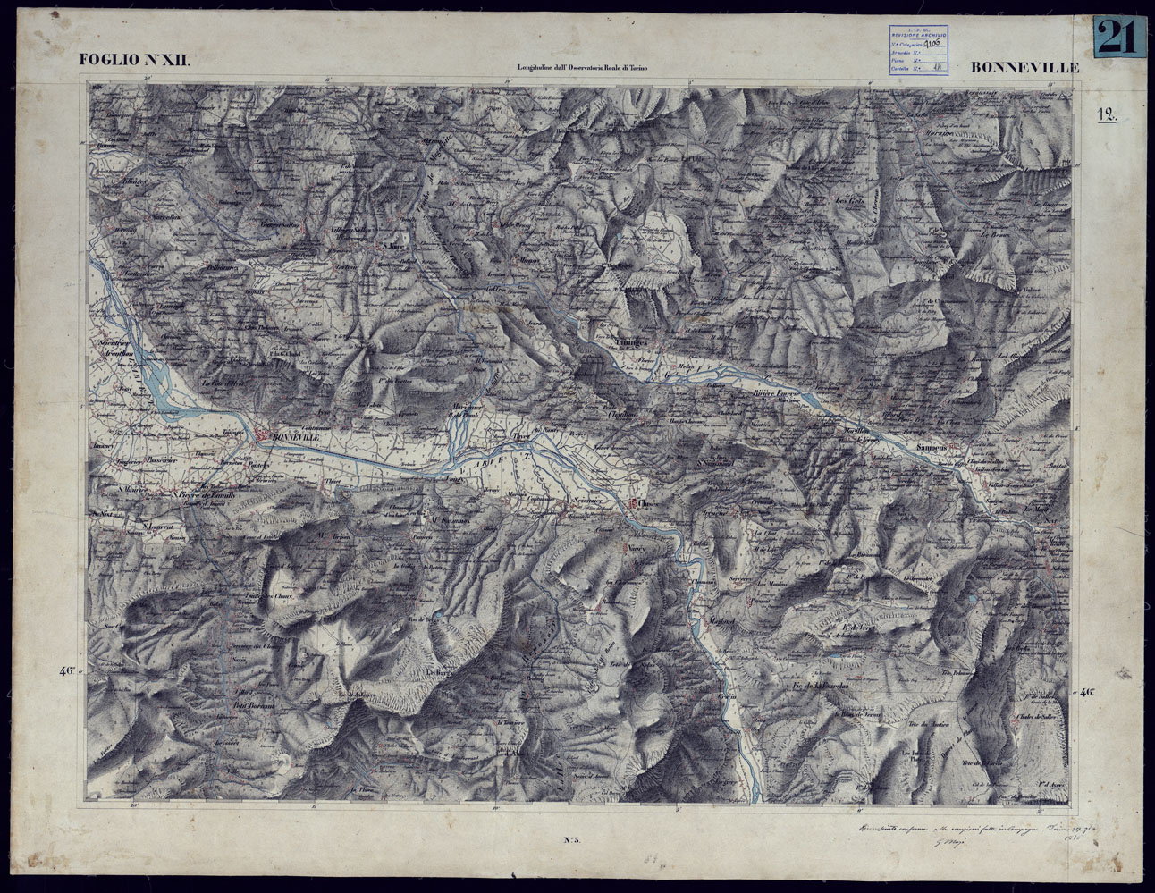 CARTA TOPOGRAFICA DEGLI STATI IN TERRAFERMA DI S.M. IL RE DI SARDEGNA ALLA SCALA DI 1 A 50.000 OPERA DEL CORPO REALE DELLO STATO MAGGIORE - FOGLIO N°XII BONNEVILLE