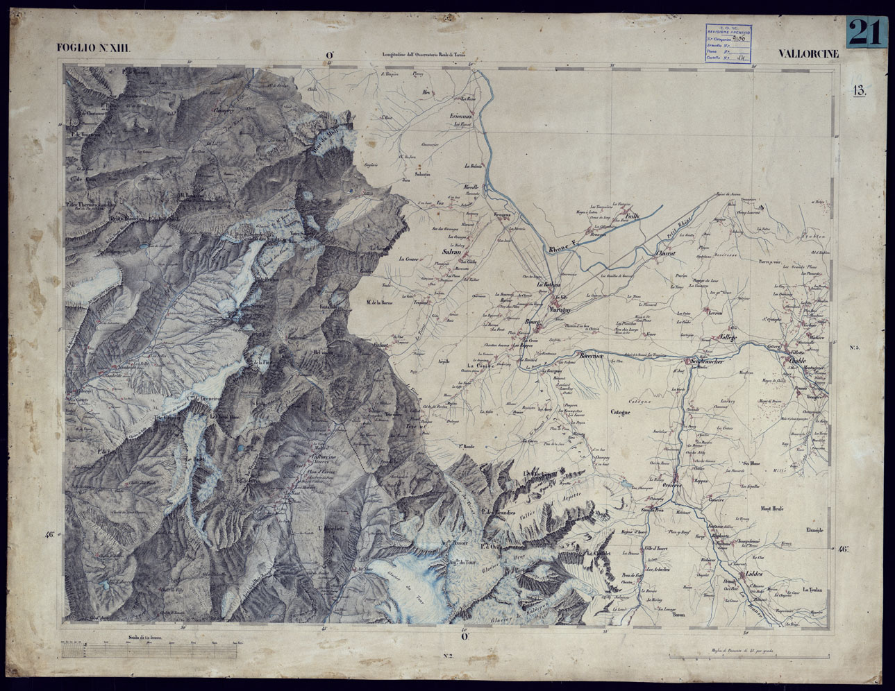 CARTA TOPOGRAFICA DEGLI STATI IN TERRAFERMA DI S.M. IL RE DI SARDEGNA ALLA SCALA DI 1 A 50.000 OPERA DEL CORPO REALE DELLO STATO MAGGIORE - FOGLIO N°XIII VALLORCINE