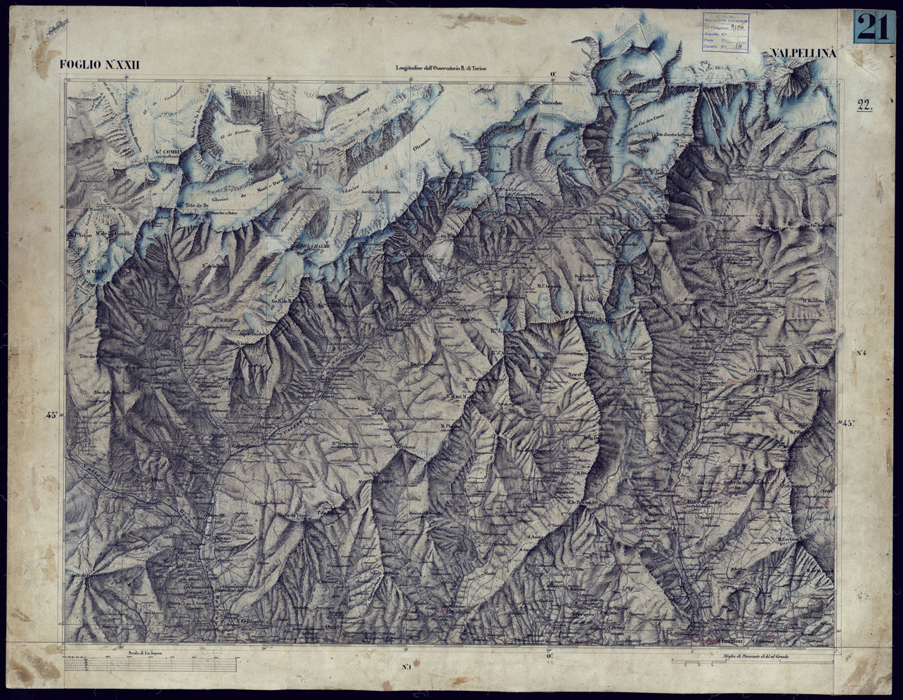CARTA TOPOGRAFICA DEGLI STATI IN TERRAFERMA DI S.M. IL RE DI SARDEGNA ALLA SCALA DI 1 A 50.000 OPERA DEL CORPO REALE DELLO STATO MAGGIORE - FOGLIO N°XXII VALPELLINA