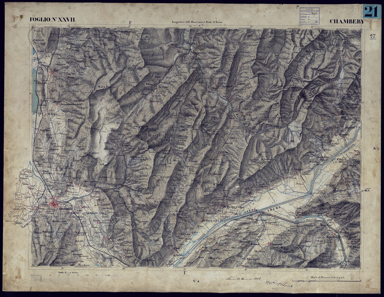 CARTA TOPOGRAFICA DEGLI STATI IN TERRAFERMA DI S.M. IL RE DI SARDEGNA ALLA SCALA DI 1 A 50.000 OPERA DEL CORPO REALE DELLO STATO MAGGIORE - FOGLIO N°XXVII CHAMBERY