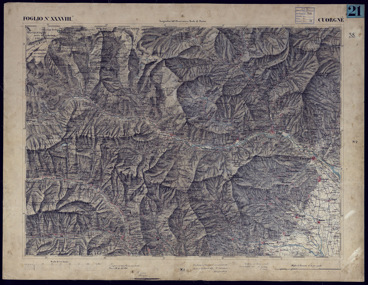 CARTA TOPOGRAFICA DEGLI STATI IN TERRAFERMA DI S.M. IL RE DI SARDEGNA ALLA SCALA DI 1 A 50.000 OPERA DEL CORPO REALE DELLO STATO MAGGIORE - FOGLIO N°XXXVIII COURGNE'