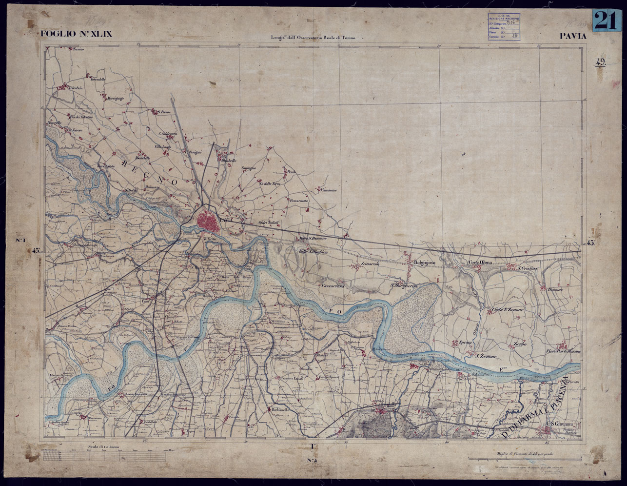 CARTA TOPOGRAFICA DEGLI STATI IN TERRAFERMA DI S.M. IL RE DI SARDEGNA ALLA SCALA DI 1 A 50.000 OPERA DEL CORPO REALE DELLO STATO MAGGIORE - FOGLIO N°XLIX PAVIA