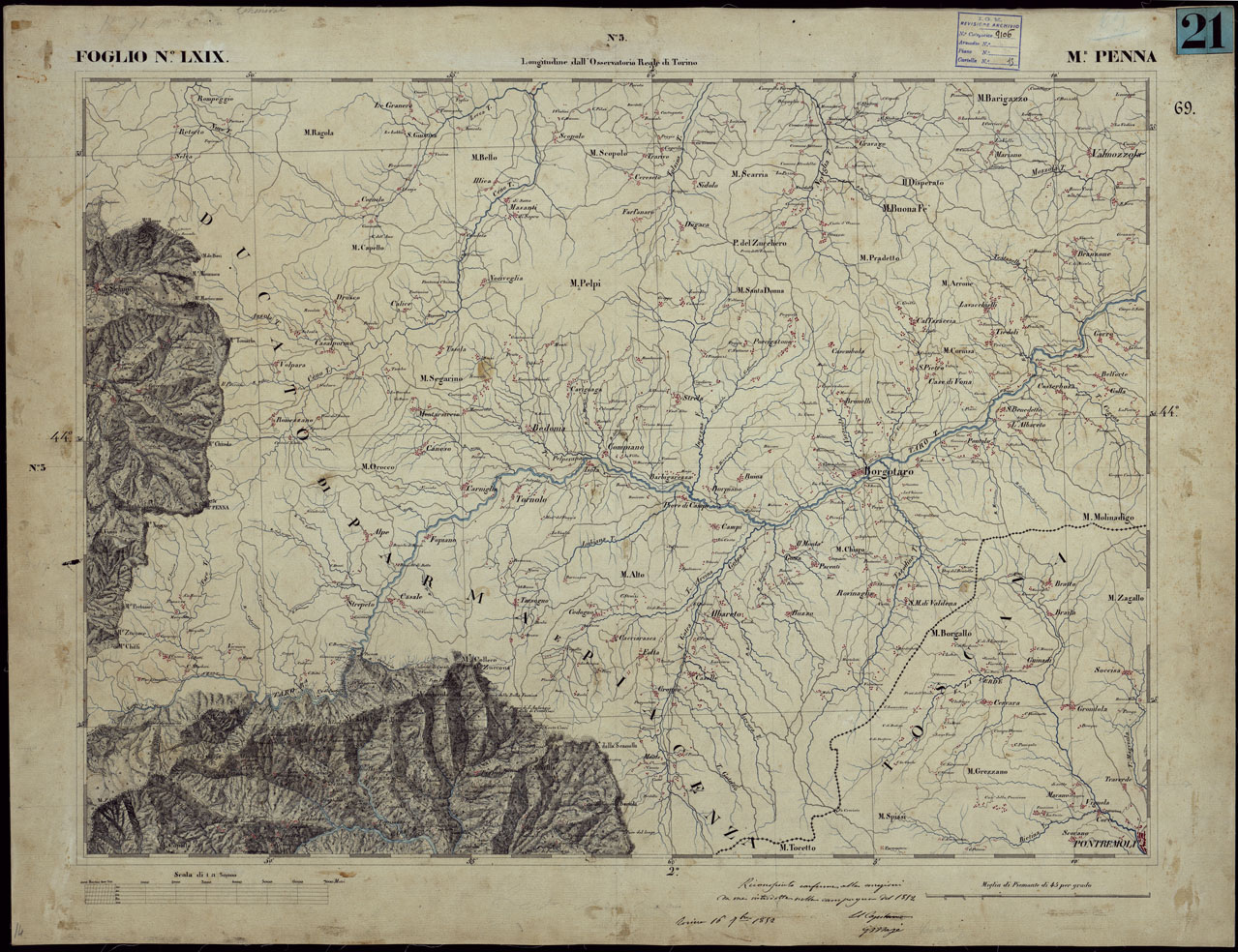 CARTA TOPOGRAFICA DEGLI STATI IN TERRAFERMA DI S.M. IL RE DI SARDEGNA ALLA SCALA DI 1 A 50.000 OPERA DEL CORPO REALE DELLO STATO MAGGIORE - FOGLIO N°LXIX M. PENNA