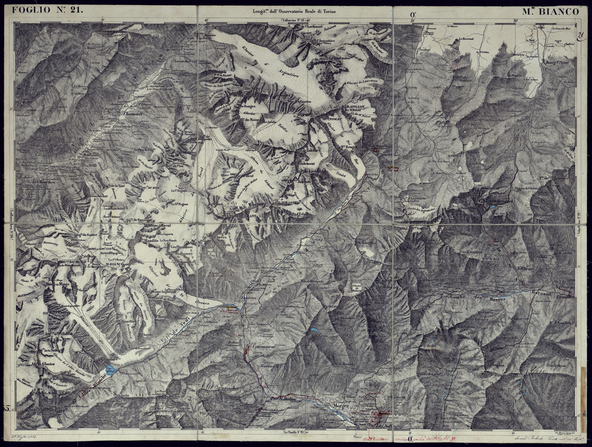 CARTA TOPOGRAFICA DEGLI STATI IN TERRAFERMA DI S.M. IL RE DI SARDEGNA ALLA SCALA DI 1 A 50.000 OPERA DEL CORPO REALE DELLO STATO MAGGIORE - FOGLIO N°21 M. BIANCO
