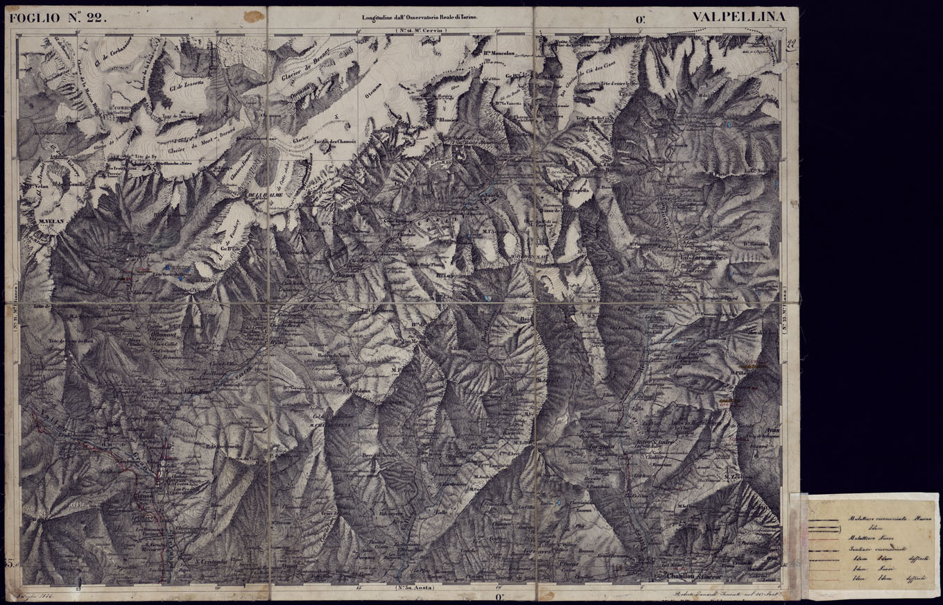 CARTA TOPOGRAFICA DEGLI STATI IN TERRAFERMA DI S.M. IL RE DI SARDEGNA ALLA SCALA DI 1 A 50.000 OPERA DEL CORPO REALE DELLO STATO MAGGIORE - FOGLIO N°22 VALPELLINA