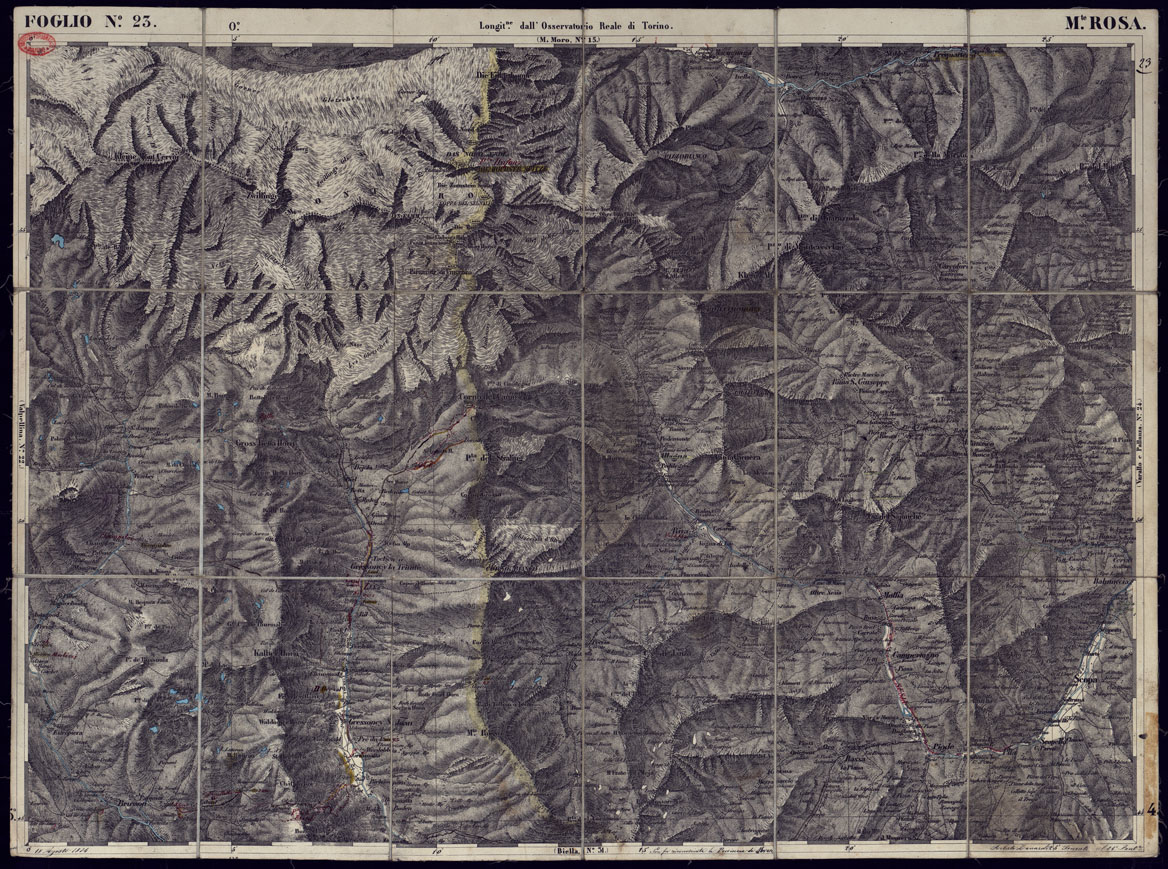 CARTA TOPOGRAFICA DEGLI STATI IN TERRAFERMA DI S.M. IL RE DI SARDEGNA ALLA SCALA DI 1 A 50.000 OPERA DEL CORPO REALE DELLO STATO MAGGIORE - FOGLIO N°23 M. ROSA