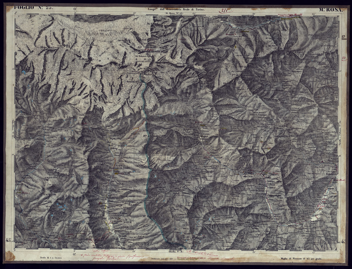 CARTA TOPOGRAFICA DEGLI STATI IN TERRAFERMA DI S.M. IL RE DI SARDEGNA ALLA SCALA DI 1 A 50.000 OPERA DEL CORPO REALE DELLO STATO MAGGIORE - FOGLIO N°23 M. ROSA