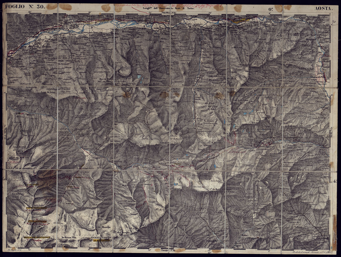 CARTA TOPOGRAFICA DEGLI STATI IN TERRAFERMA DI S.M. IL RE DI SARDEGNA ALLA SCALA DI 1 A 50.000 OPERA DEL CORPO REALE DELLO STATO MAGGIORE - FOGLIO N°30 AOSTA