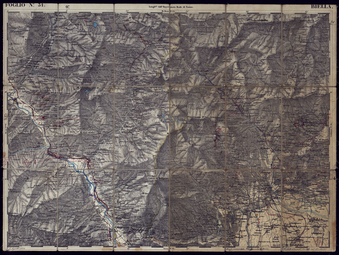 CARTA TOPOGRAFICA DEGLI STATI IN TERRAFERMA DI S.M. IL RE DI SARDEGNA ALLA SCALA DI 1 A 50.000 OPERA DEL CORPO REALE DELLO STATO MAGGIORE - FOGLIO N°31 BIELLA