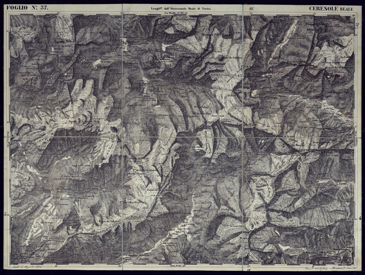 CARTA TOPOGRAFICA DEGLI STATI IN TERRAFERMA DI S.M. IL RE DI SARDEGNA ALLA SCALA DI 1 A 50.000 OPERA DEL CORPO REALE DELLO STATO MAGGIORE - FOGLIO N°37 CERESOLE REALE