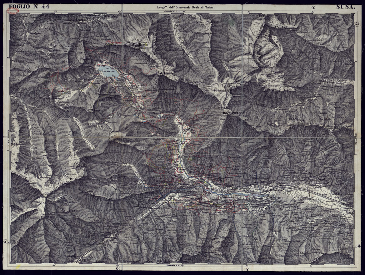 CARTA TOPOGRAFICA DEGLI STATI IN TERRAFERMA DI S.M. IL RE DI SARDEGNA ALLA SCALA DI 1 A 50.000 OPERA DEL CORPO REALE DELLO STATO MAGGIORE - FOGLIO N°44 SUSA