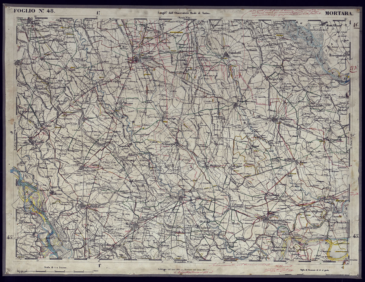CARTA TOPOGRAFICA DEGLI STATI IN TERRAFERMA DI S.M. IL RE DI SARDEGNA ALLA SCALA DI 1 A 50.000 OPERA DEL CORPO REALE DELLO STATO MAGGIORE - FOGLIO N°48 MORTARA