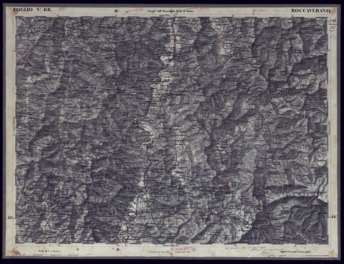 CARTA TOPOGRAFICA DEGLI STATI IN TERRAFERMA DI S.M. IL RE DI SARDEGNA ALLA SCALA DI 1 A 50.000 OPERA DEL CORPO REALE DELLO STATO MAGGIORE - FOGLIO N°66 ROCCAVERANO