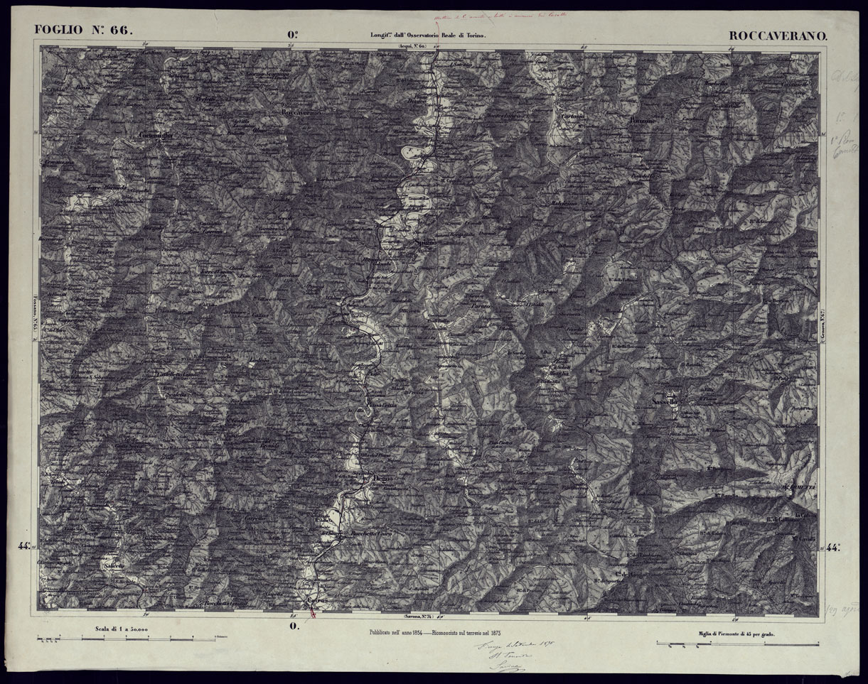 CARTA TOPOGRAFICA DEGLI STATI IN TERRAFERMA DI S.M. IL RE DI SARDEGNA ALLA SCALA DI 1 A 50.000 OPERA DEL CORPO REALE DELLO STATO MAGGIORE - FOGLIO N°66 ROCCAVERANO