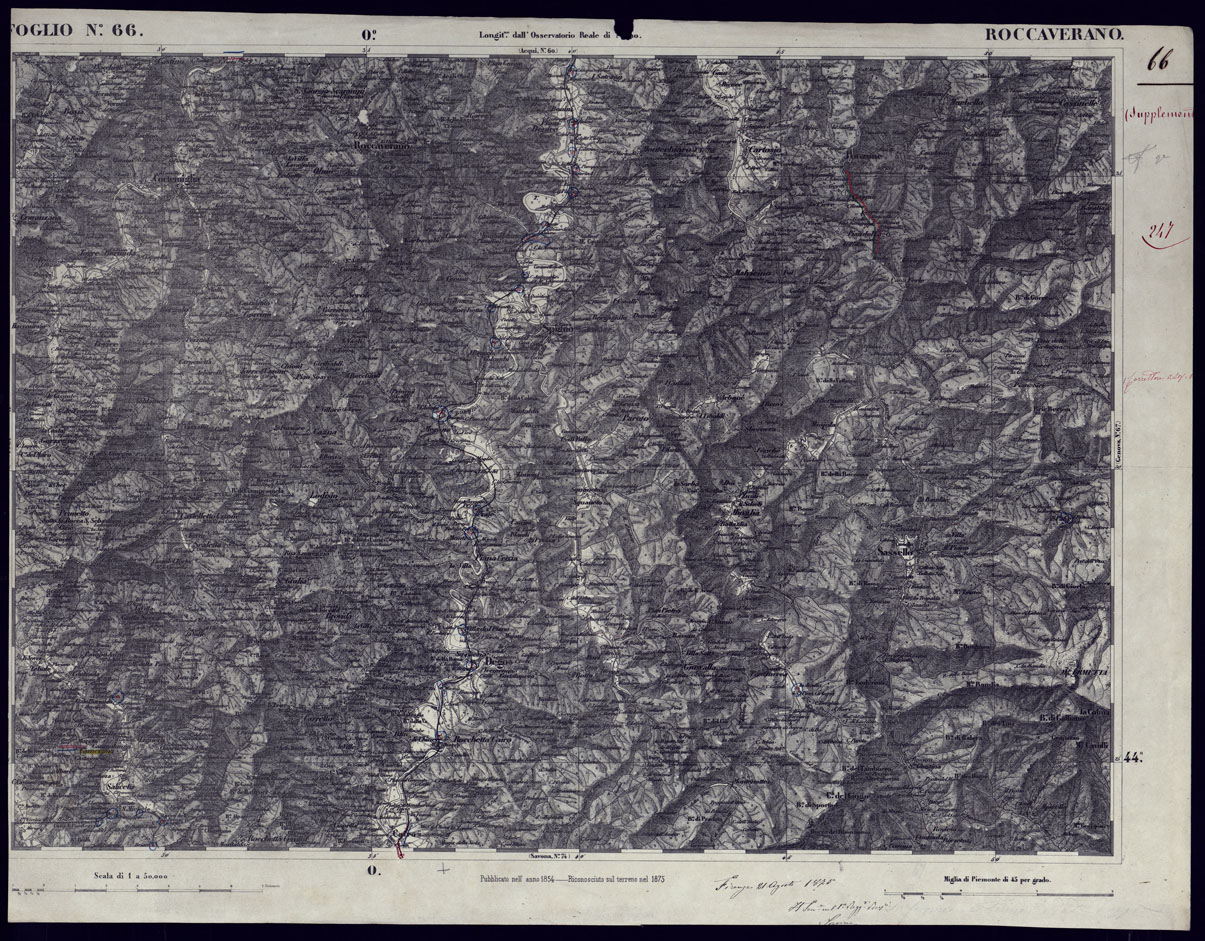 CARTA TOPOGRAFICA DEGLI STATI IN TERRAFERMA DI S.M. IL RE DI SARDEGNA ALLA SCALA DI 1 A 50.000 OPERA DEL CORPO REALE DELLO STATO MAGGIORE - FOGLIO N°66 ROCCAVERANO SUPPLEMENTO