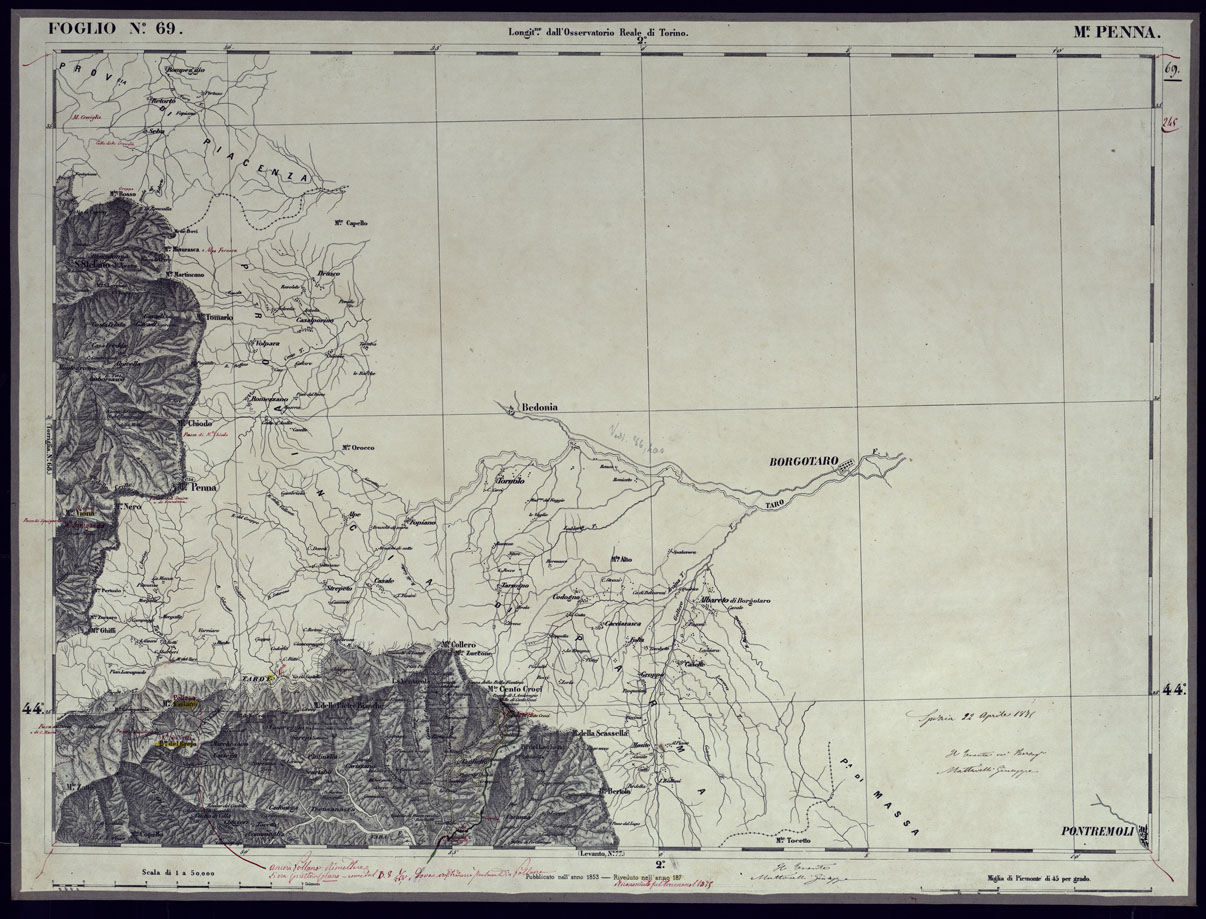 CARTA TOPOGRAFICA DEGLI STATI IN TERRAFERMA DI S.M. IL RE DI SARDEGNA ALLA SCALA DI 1 A 50.000 OPERA DEL CORPO REALE DELLO STATO MAGGIORE - FOGLIO N°69 M. PENNA