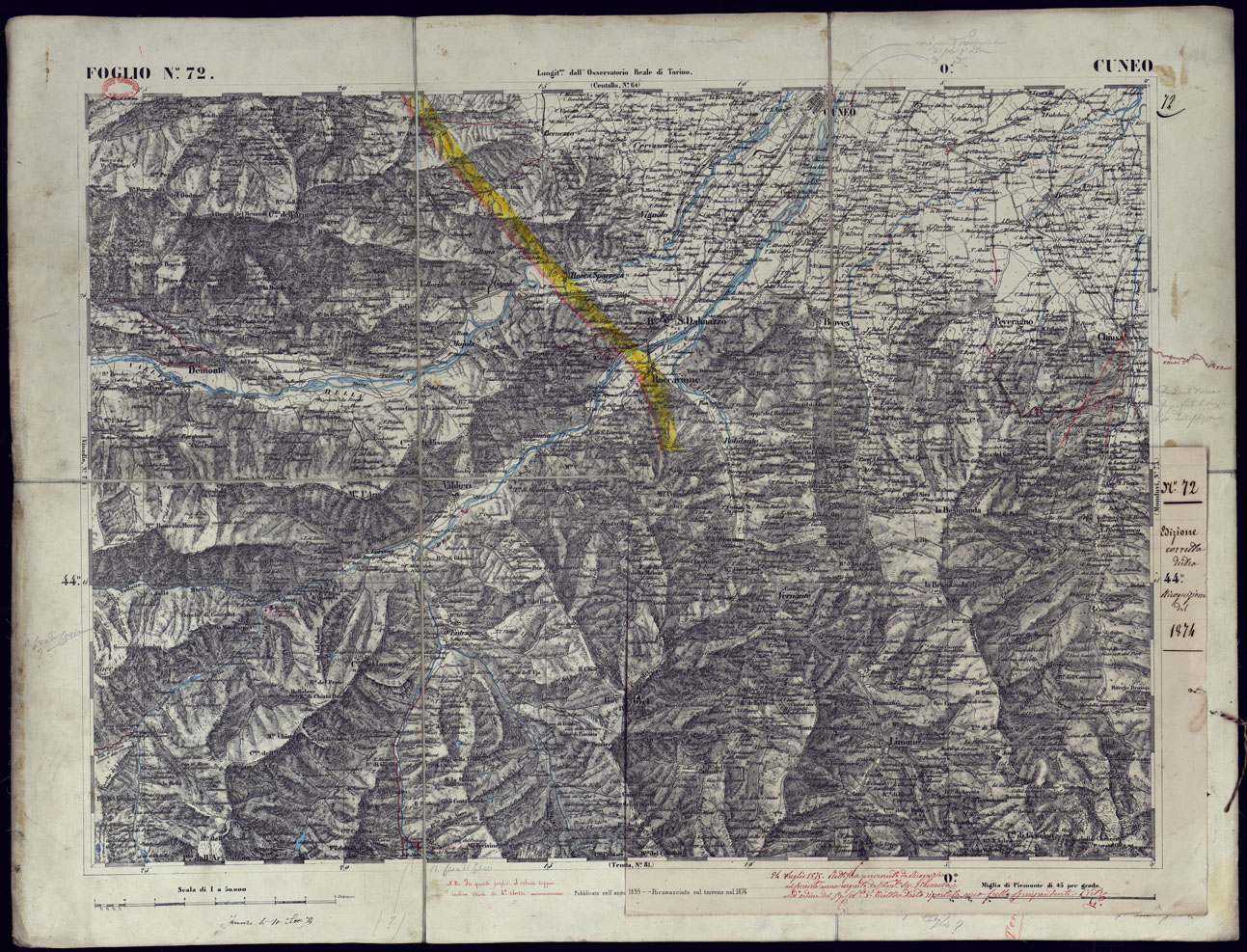 CARTA TOPOGRAFICA DEGLI STATI IN TERRAFERMA DI S.M. IL RE DI SARDEGNA ALLA SCALA DI 1 A 50.000 OPERA DEL CORPO REALE DELLO STATO MAGGIORE - FOGLIO N°72 CUNEO