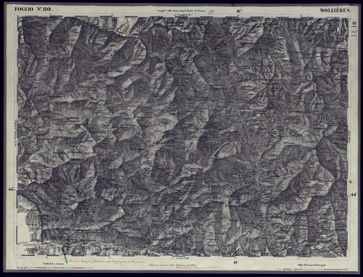 CARTA TOPOGRAFICA DEGLI STATI IN TERRAFERMA DI S.M. IL RE DI SARDEGNA ALLA SCALA DI 1 A 50.000 OPERA DEL CORPO REALE DELLO STATO MAGGIORE - FOGLIO N°80 MOLLIERES