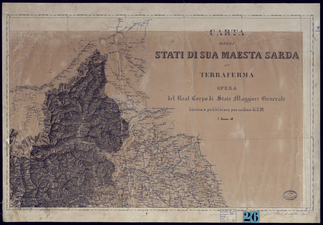 CARTA DEGLI STATI DI SUA MAESTA SARDA IN TERRAFERMA OPERA DEL CORPO DI STATO MAGGIORE GENERALE INCISA O PUBBLICATA PER ORDINE DI S.M. L'ANNO 18 - FOGLIO 2.