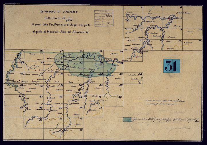 CARTA DI QUASI TUTTA L'EX PROVINCIA DI ACQUI E DI PARTE DI QUELLE DI MONDOVI', ALBA ED ALESSANDRIA - QUADRO D'UNIONE.