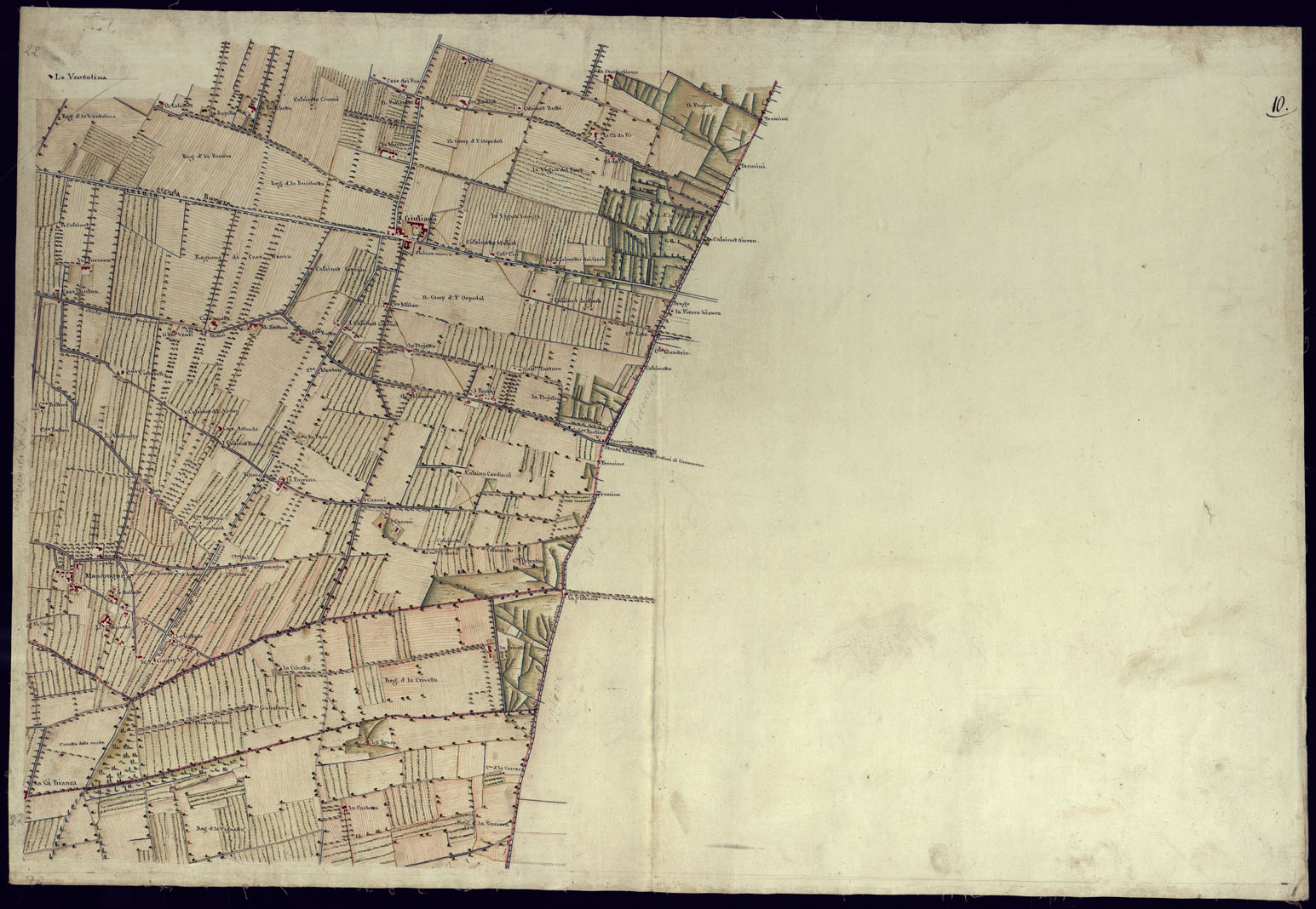 "Cinquantasei fogli più un quadro d'unione, disegnati a penna a più tinte ed acquerellati. Non portano indicazione di data nè di autore, ma si possono ritenere opera della fine del secolo XVIII. Documento topografico del più grande interesse per la copia grandissima degli elementi topografici che vi sono rappresentati, come comporta la notevole grandezza della scala del disegno e per la chiarezza e l'evidenza artistica della rappresentazione. Le città e i villaggi sono rappresentati nella loro pianta geometrica dettagliatissima. Ricchissima pure la toponomastica relativa ai centri abitati, corsi d'acqua, strade, regioni. Sono indicate con diverse tinte le differenti zone di cultura."