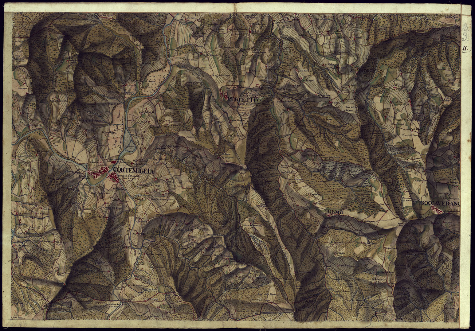 CARTA DI QUASI TUTTA L'EX PROVINCIA DI ACQUI E DI PARTE DI QUELLE DI MONDOVI', ALBA ED ALESSANDRIA - FOGLIO 25.