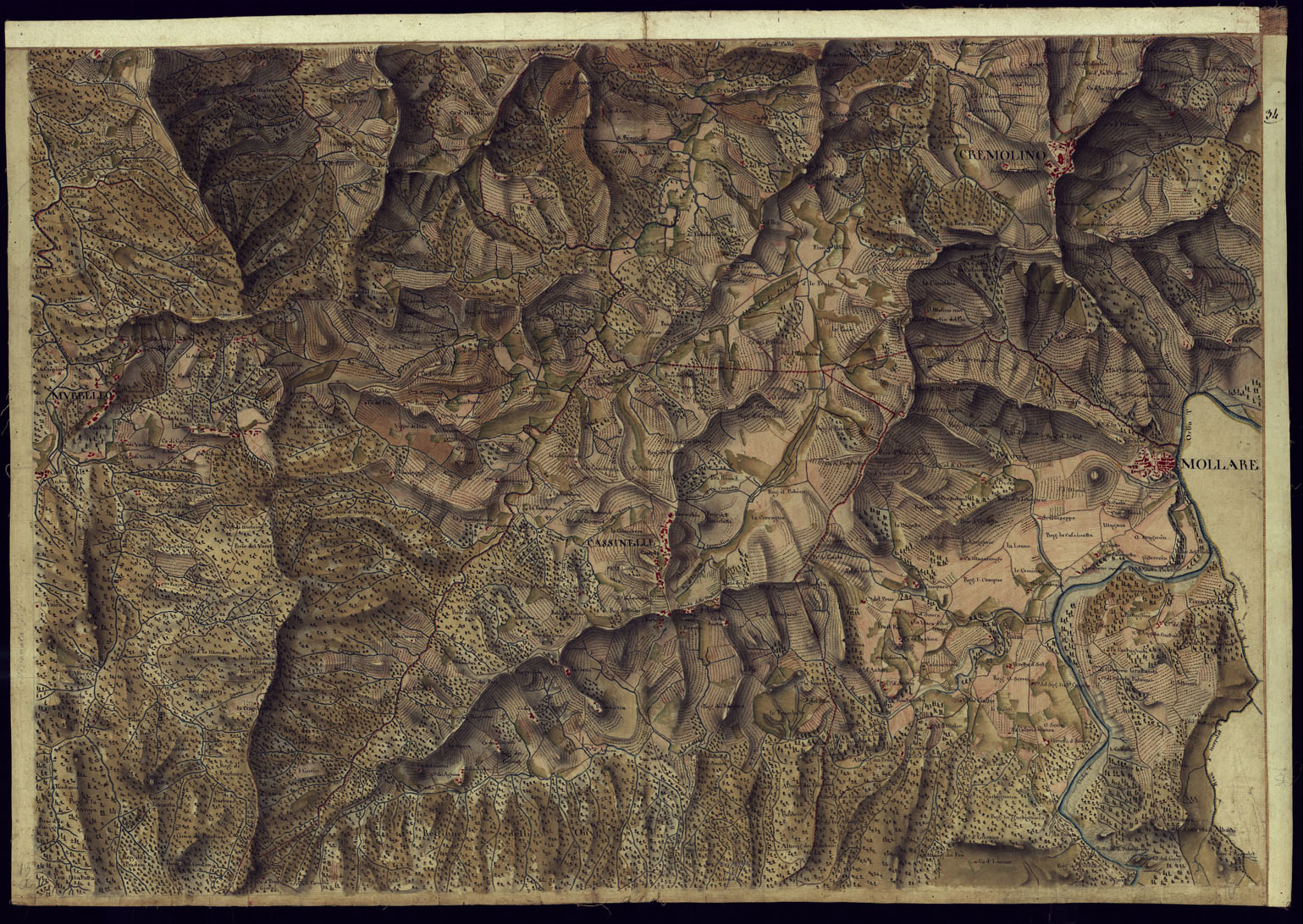 CARTA DI QUASI TUTTA L'EX PROVINCIA DI ACQUI E DI PARTE DI QUELLE DI MONDOVI', ALBA ED ALESSANDRIA - FOGLIO 34.