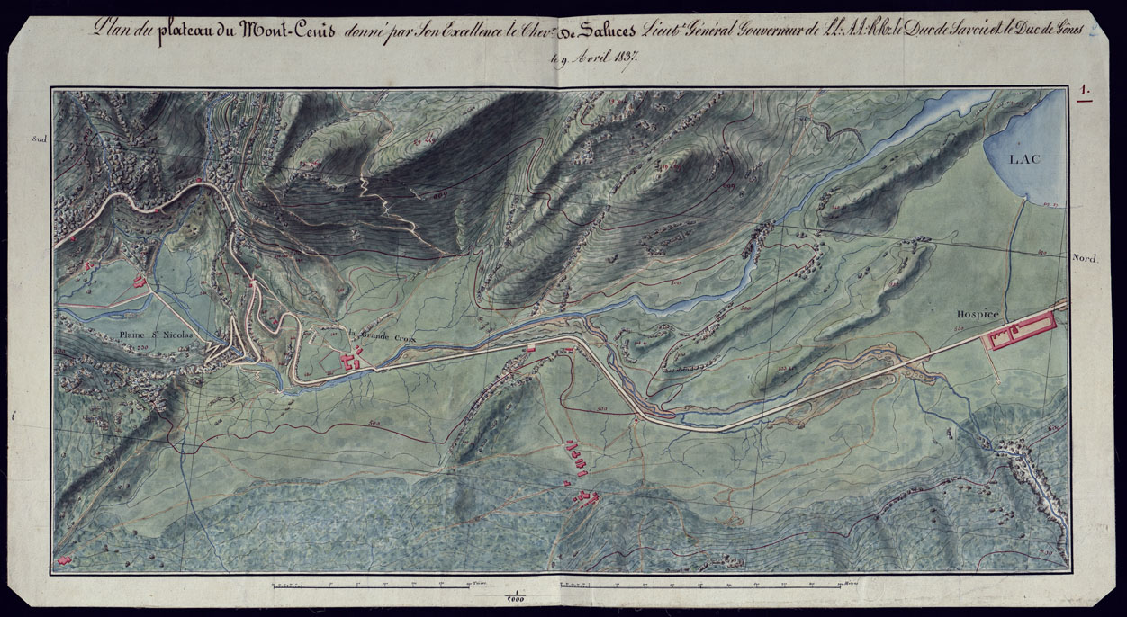 PLAN DU PLATEAU DU MONT-CENIS DONNE' PAR SON EXCELLENCE LE CHEV DE SALUCES LIEUT. GENERAL GOUVERNEUR DE LL:AA:RR: LE DUC DE SAVOIE ET LE DUC DE GENES LE 9 AVRIL 1837.