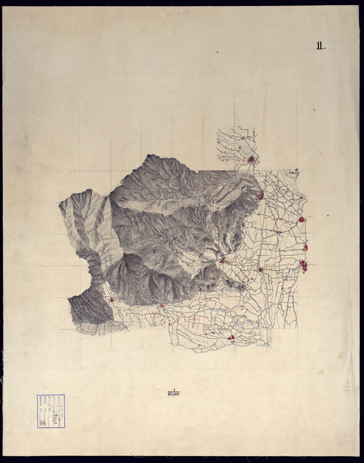 "Il titolo non è presente sulla carta. Riproduzione al 50.000 dei disegni eseguiti nel 1853 dagli Ufficiali ammessi al corso di studi presso il Corpo di S.M. (documenti n. 52 e n. 53). Il documento è privo di data e firma."