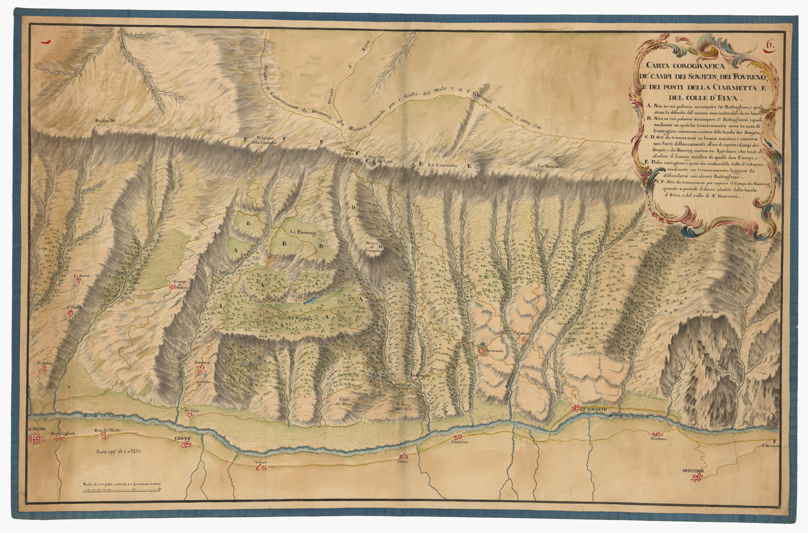 CARTA COROGRAFICA DE' CAMPI DEI SOUJETS, DEI FOURENG, E DEI POSTI DELLA CIARMETTA E DEL COLLE D'ELVA