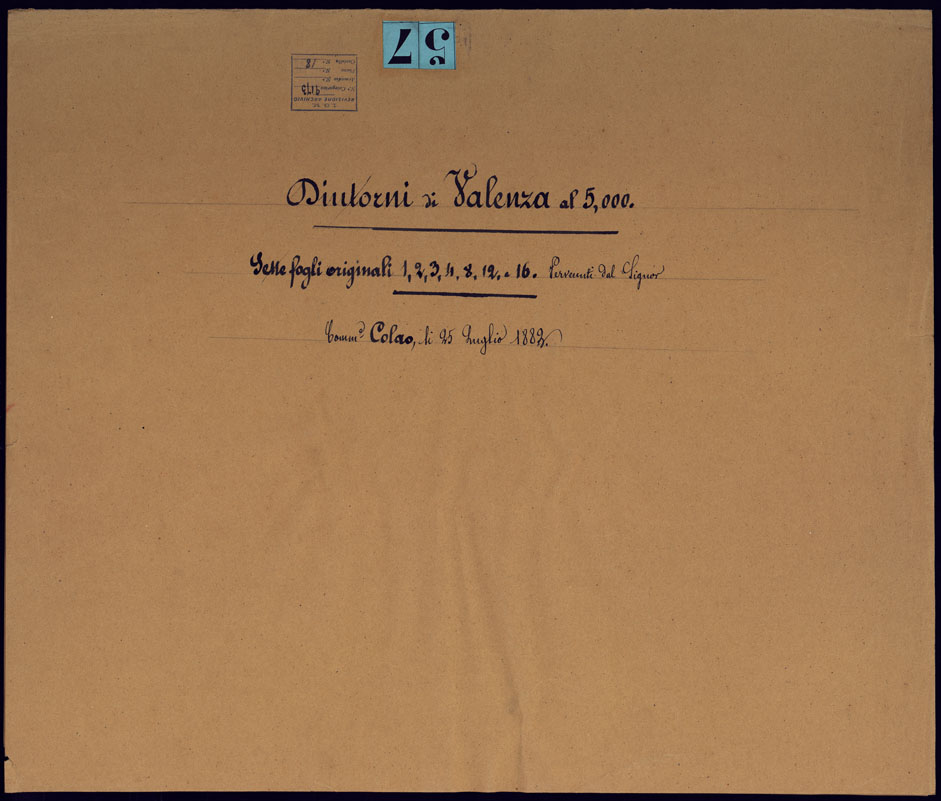 DINTORNI DI VALENZA AL 5,000. SETTE FOGLI ORIGINALI 1,2,3,4,8,12,16 PERVENUTI DL SIGNOR. COMM. COLAO IL 25 FUGLIO 1883 - TITOLO.