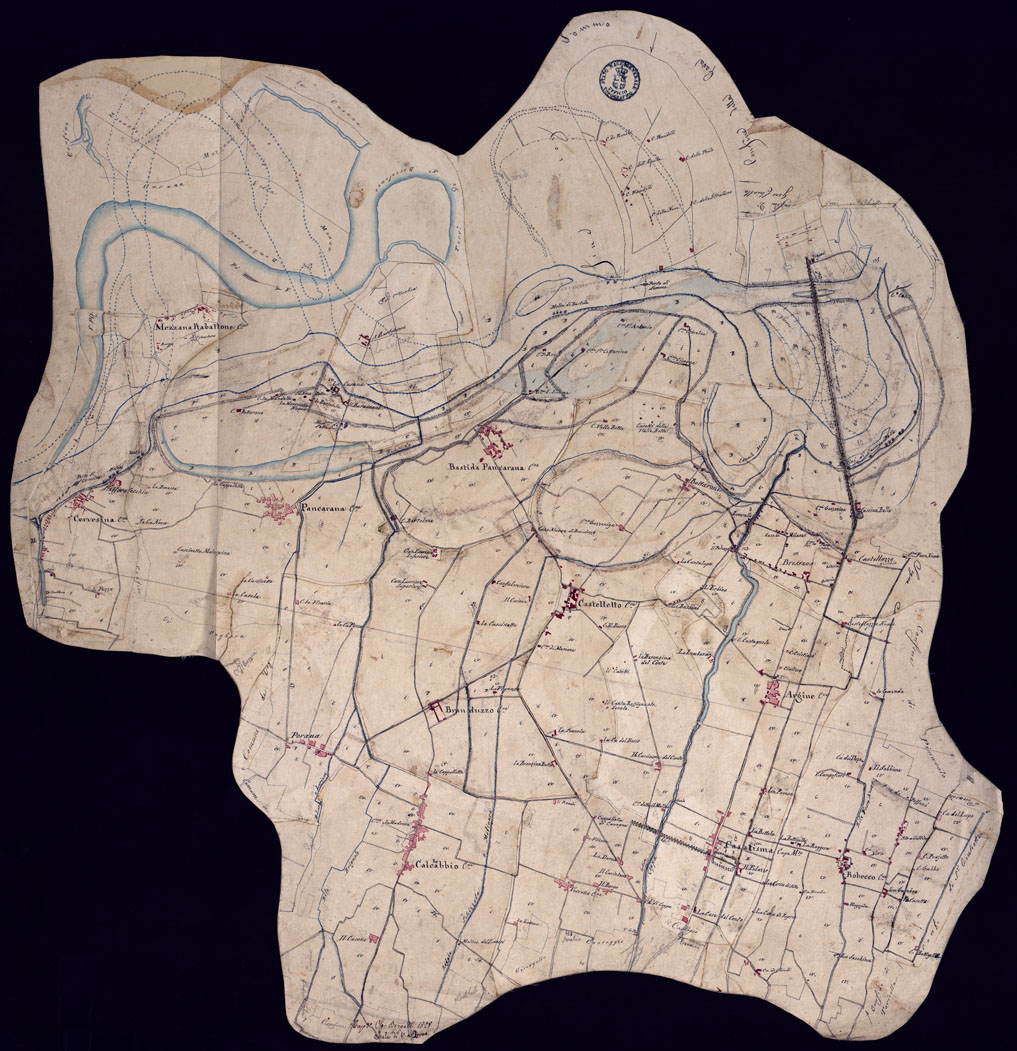 "Undici fogli rappresentanti il territorio vogherese tra il Po e la Staffora. Disegni originali apenna di levate topografiche, con l'orografia rappresentata a curve dimostrative e tratteggio. Data l'mpiezza della scala e la fedeltà del rilievo, il documento è interessante per lo studio delle variazioni fisiografiche e toponomastiche subite dalla regione."