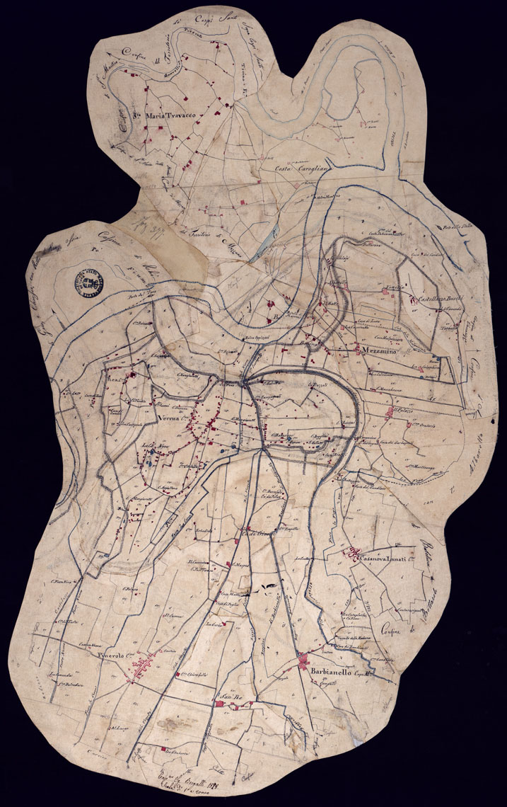 "Undici fogli rappresentanti il territorio vogherese tra il Po e la Staffora. Disegni originali a penna di levate topografiche, con l'orografia rappresentata a curve dimostrative e tratteggio. Data l'ampiezza della scala e la fedeltà del rilievo, il documento è interessato per lo studio delle variazioni fisiografiche e toponomastiche subite dalla regione."