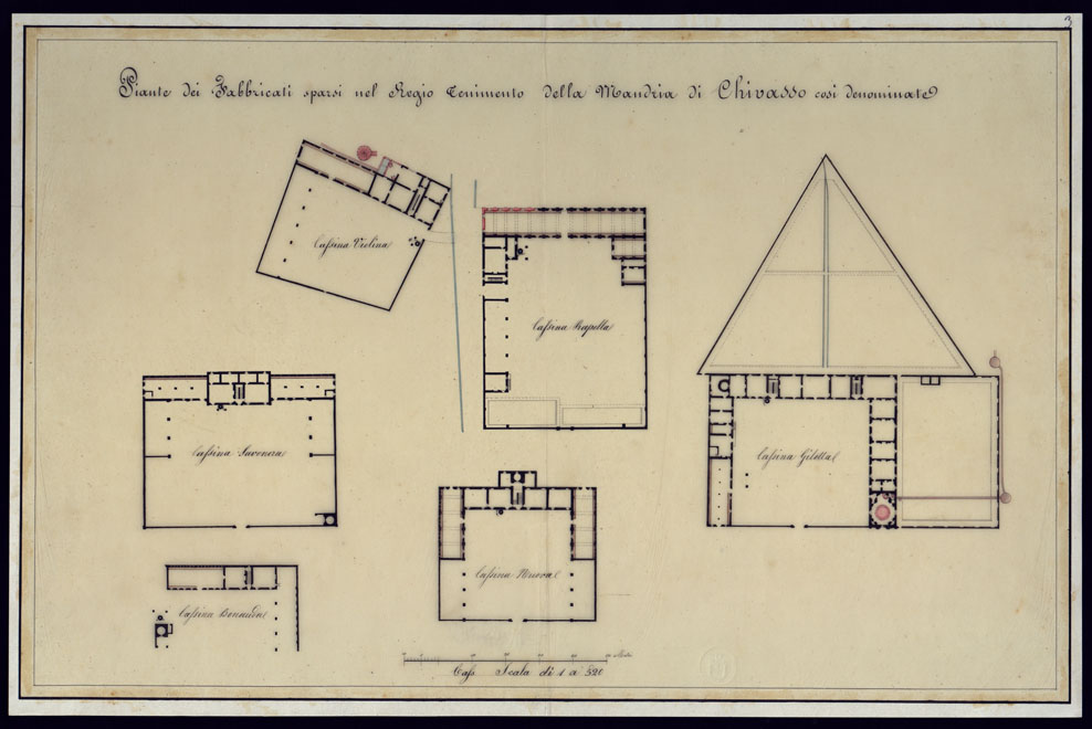 PIANTE DEI FABBRICATI SPARSI NEL REGIO TENIMENTO DELLA MANDRIA DI CHIVASSO COSI' DENOMINATE.