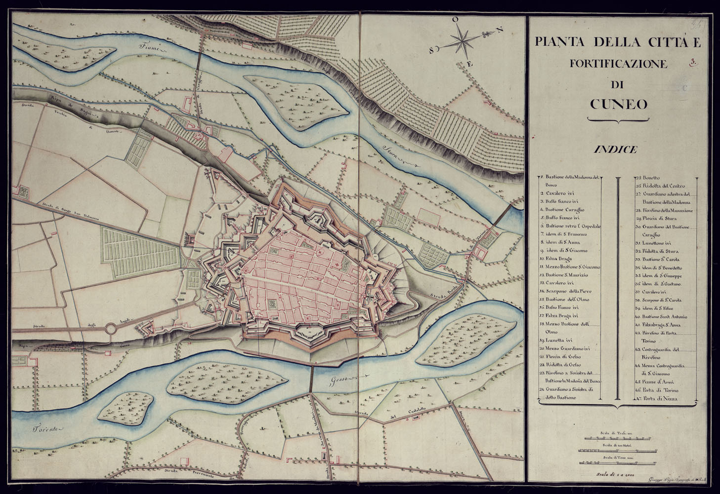 PIANTA DELLA CITTA' E FORTIFICAZIONE DI CUNEO.