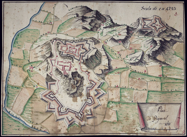 "Questa pianta ha spiccato carattere militare. Reca nel verso la scritta "Forteresse de Pignerol". Le fortificazioni vi sono disegnate con molta cura."