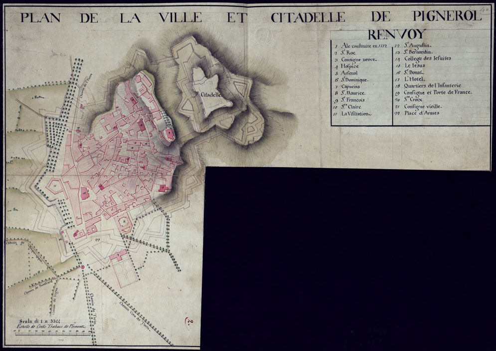 PLAN DE LA VILLE ET CITADELLE DE PIGNEROL.