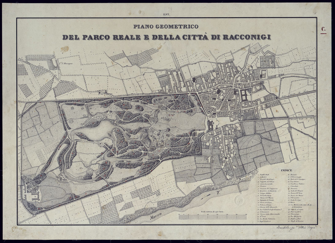 PIANO GEOMETRICO DEL PARCO REALE E DELLA CITTA' DI RACCONIGI.
