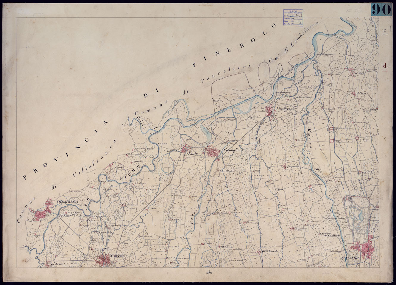 CARTA TOPOGRAFICA DEI DINTORNI DI RACCONIGI FORMATA DAL REAL CORPO DI STATO MAGGIORE GENERALE ALLA SCALA DI 1 PER 20.000