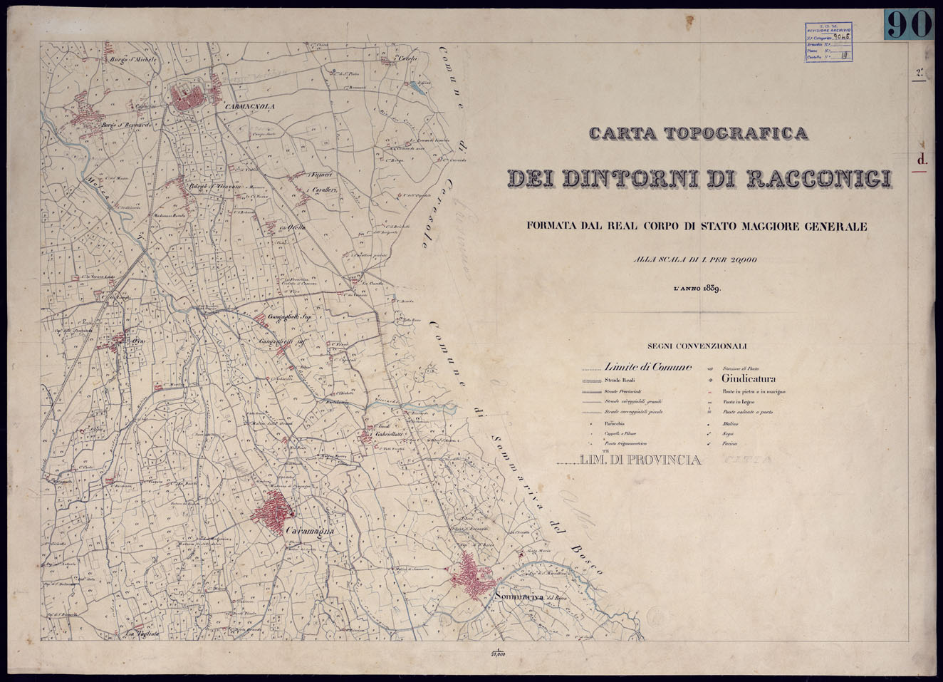 CARTA TOPOGRAFICA DEI DINTORNI DI RACCONIGI FORMATA DAL REAL CORPO DI STATO MAGGIORE GENERALE ALLA SCALA DI 1 PER 20.000
