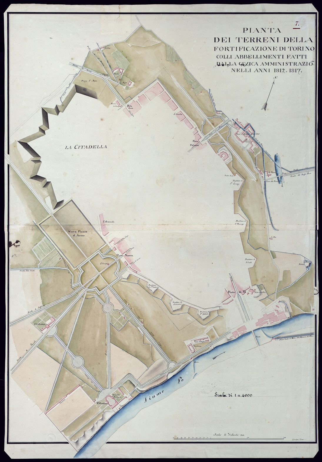 PIANTA DEI TERRENI DELLA FORTIFICAZIONE DI TORINO COLLI ABBELLIMENTI FATTI DALLA CIVICA AMMINISTRAZIONE NELLI ANNI 1812-1817