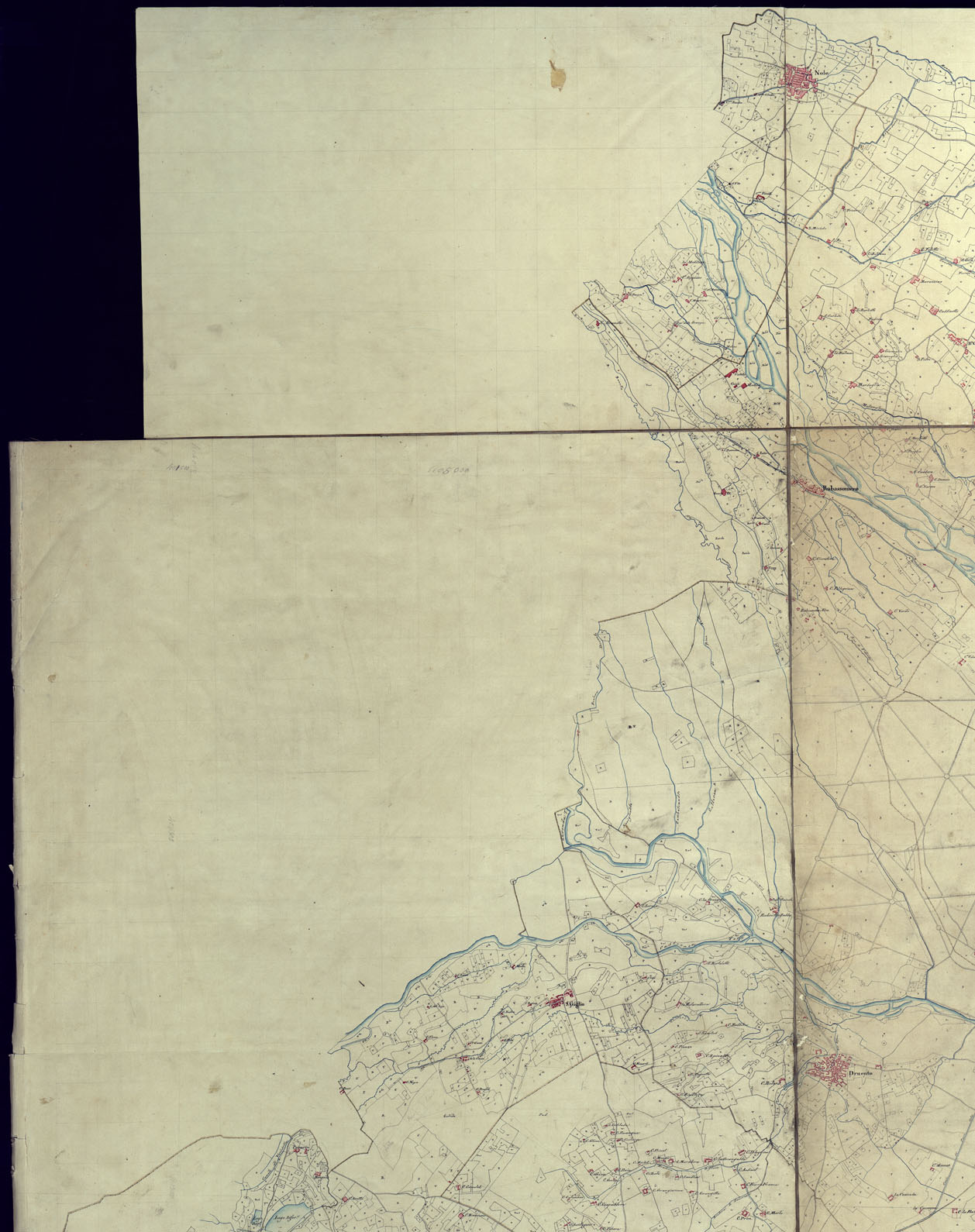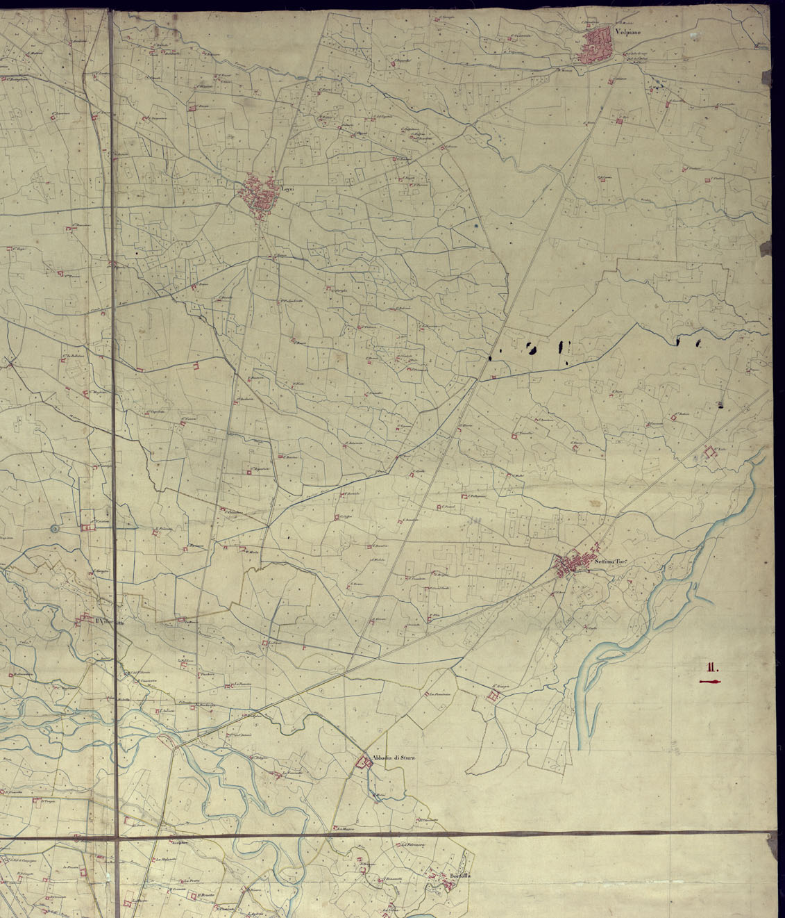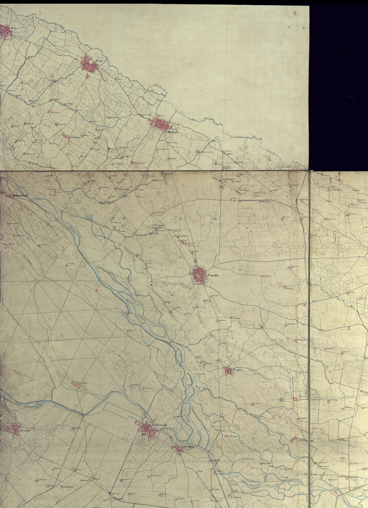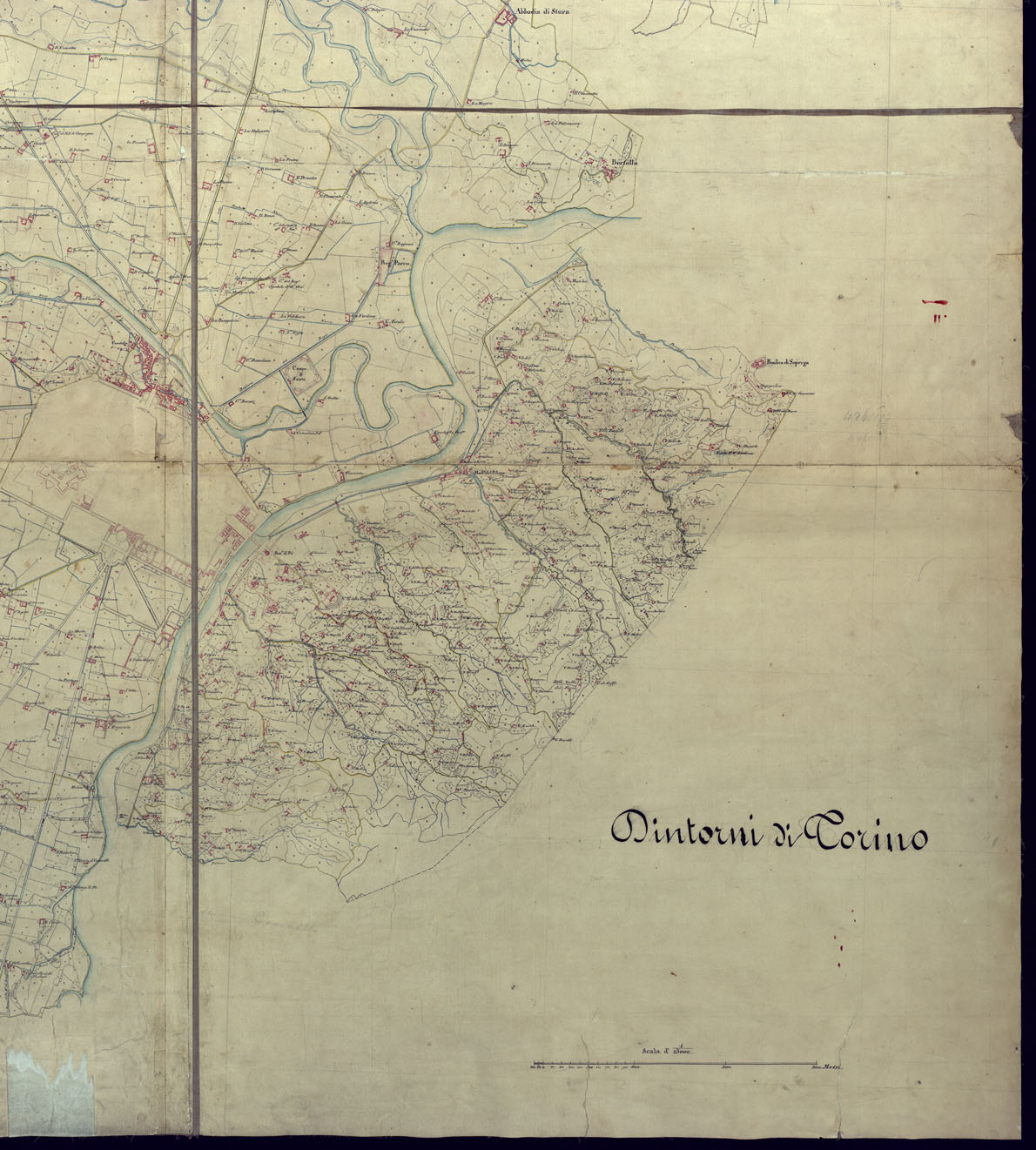 "Più fogli disegnati a penna riuniti in un sol quadro su tela rappresentanti la sola planimetria della regione compresa fra Rivoli e Superga."