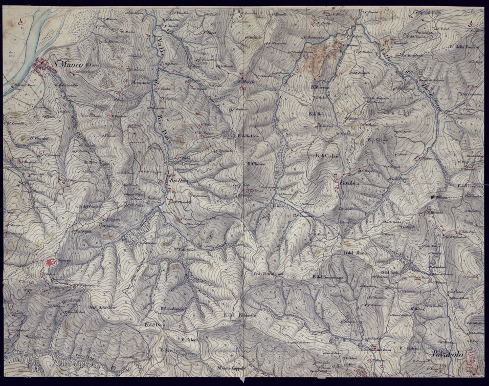 CARTA TOPOGRAFICA A CURVE DIMOSTRATIVE DI UNA PARTE DELLA REGIONE NORD-EST DEI DINTORNI DI TORINO - FOGLIO 4.