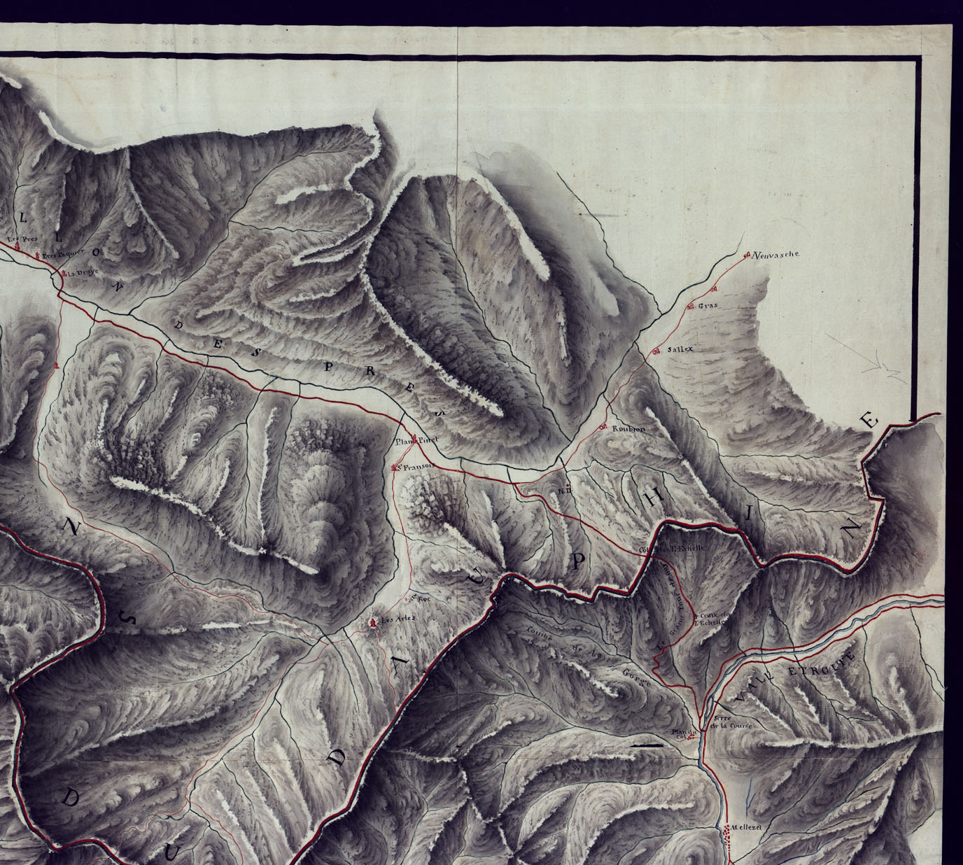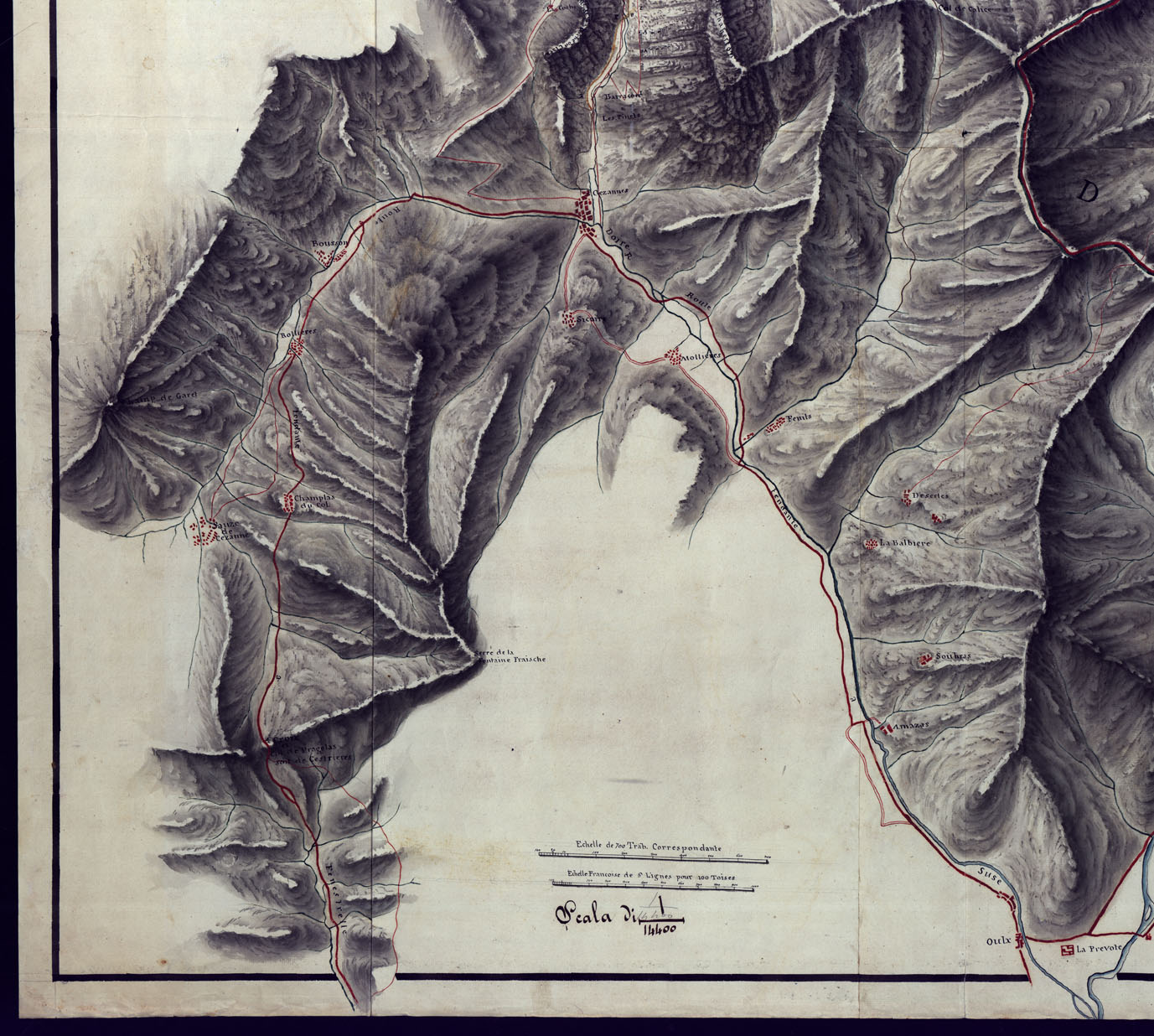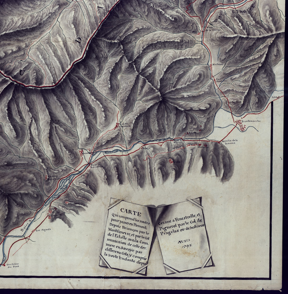 "Par differens cols y compris la route tendante depuis Cezane a Fenestrelle et Pignerol par le col de Pragelas ou de Sestrieres. Mars 1798. Copia del documento 115. Firmato Luigi Imer."