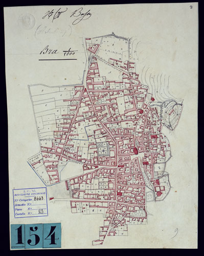 "Il titolo non è presente sulla carta. Gruppo di 12 piante, disegnate ad acquerello, probabilmente di origine catastale, riconosciute da Ufficiali dello Stato Maggiore e da Topografi (Cap. Basso, Cap. Lafleche, Geometra Coda) per servire alla carta generale degli Stati Sardi al 50.000."